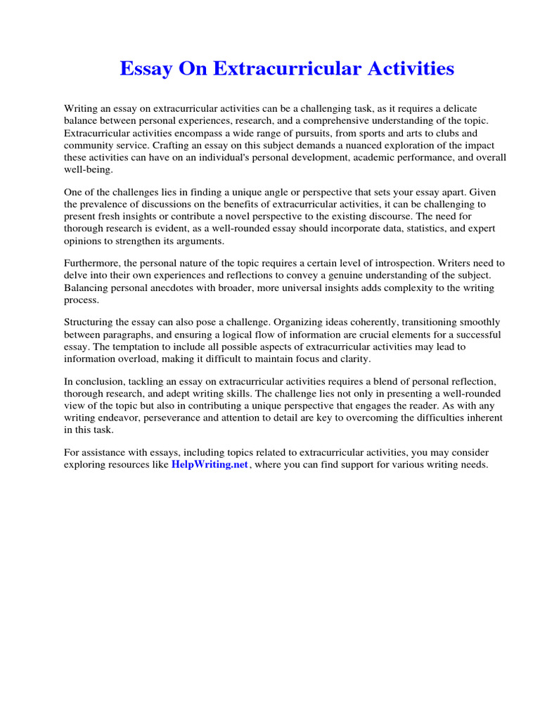 Essay On Extracurricular Activities PDF Essays