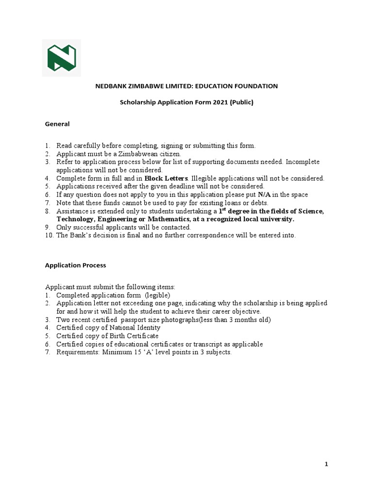 Nedbank Zimbabwe Limited Education Foundation Scholarship Application