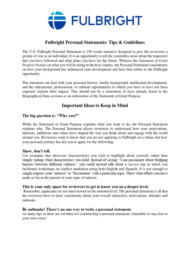 Personal Statement for Fulbright Scholarship 2024 Contentholic