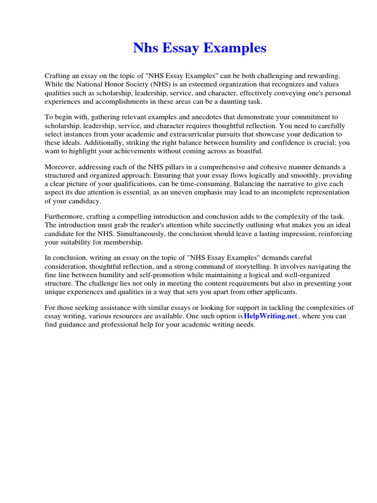 Nhs Example Essay. Fascinating Nhs Essay Examples Thatsnotus PDF