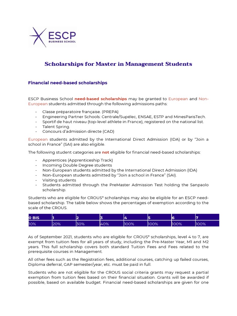 Scholarships For Master in Management Students Financial NeedBased